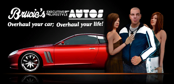 If you want to roll VIP style with the big players, you need to step up to the plate and be recognized. And the best way to roll is in a car. Not a hybrid. It's a fight for visibility out there. I'm talking carbon emissions. I'm talking high grade bezels set in platinum on the chain. Survival of the slickest. Brucie's Executive Lifestyle Autos is your one-stop-shop for car customization, for REMASCULATION.