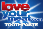 | |  | | | |  | | |  | | | CLICK HERE for advice on vegetarianism from PATE: Parents Against Tofu Eating | | | | | | |  | | |  | | | CLICK HERE for tips on dealing with a Vegan. | | | | LoveYourMeat.com Toothpaste | | |  | | |  | | | The only way to start your day! Available in bacon, roast chicken and Peking duck flavors. Smooth or chunky. | | | | Carne Convention | | |  | | |  | | | Join us at the 'Carne Convention' in Guadalajara! LoveYourMeat.com will be sponsoring the 'Around the World in 40 Meats' Exhibition. Showcasing delicacies such as Pony Pot Roast from France, Monkey Meatloaf from Cameroon and Chihuahua Carpaccio from China, this is an event not to be missed! | | | | Hardcore Carnivore | | | So vicious, it's delicious! Do you like a bit of seal with your sushi or parakeet on your pizza? We are the specialists in culinary contraband. Call us today. Confidentiality guaranteed. | | |