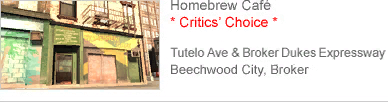 A good bar should feel like home: warm and damp like a communal bathtub. And the Homebrew Café is like home - familiar, but lonely and full of angry people you have to pretend to like in order to avoid a fight. If you don't mind your beer served slowly and with some serious attitude, Broker's Homebrew Café will transport you straight from Liberty City to the heart of Jamaica. Much of the beer is made in a real home bathtub. Anyone who finds a pubic hair in their lager gets a free shot. Don't expect 5-star treatment at this no-frills hangout in Beechwood City, but it is definitely a fun place to get fucked up, play some pool, chase a chubby, drink some Pride Brew and eat some curried goat. Enjoy. |