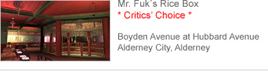 Are you ready to do some Seoul searching? Known for its exotic ingredients, tyrannical owner and mystery meat surprises, Mr. Fuk's Rice Box is a bustling, cavernous restaurant on two floors in Alderney City's vibrant Korean area. When we say 'vibrant', we mean overcrowded, infested shit heap. Our best advice for an enjoyable meal at Mr. Fuk's is not to ask too many questions and don't look into the kitchen, you won't like what you see. Roasted intestines, pig feet, coagulated ox blood, live octopus... these are people on the edge who will eat anything if you tell them that it is an aphrodisiac. Just watch out for those squirming tentacles on the way down - the Heimlich maneuver isn't going to do shit if you get a sucker clamped to your esophagus. Please bear in mind that kimchi is to Koreans as fries are to Americans - they have it with EVERY meal. If fermented, florescent cabbage is your thing, give Mr. Fuk's Rice Box a try. Korean barbeques introduced the West to a whole new concept: paying to cook your own food! You'll feel very full, slightly ill and then starving hungry again - all within a 20-minute period. Well worth a visit. |